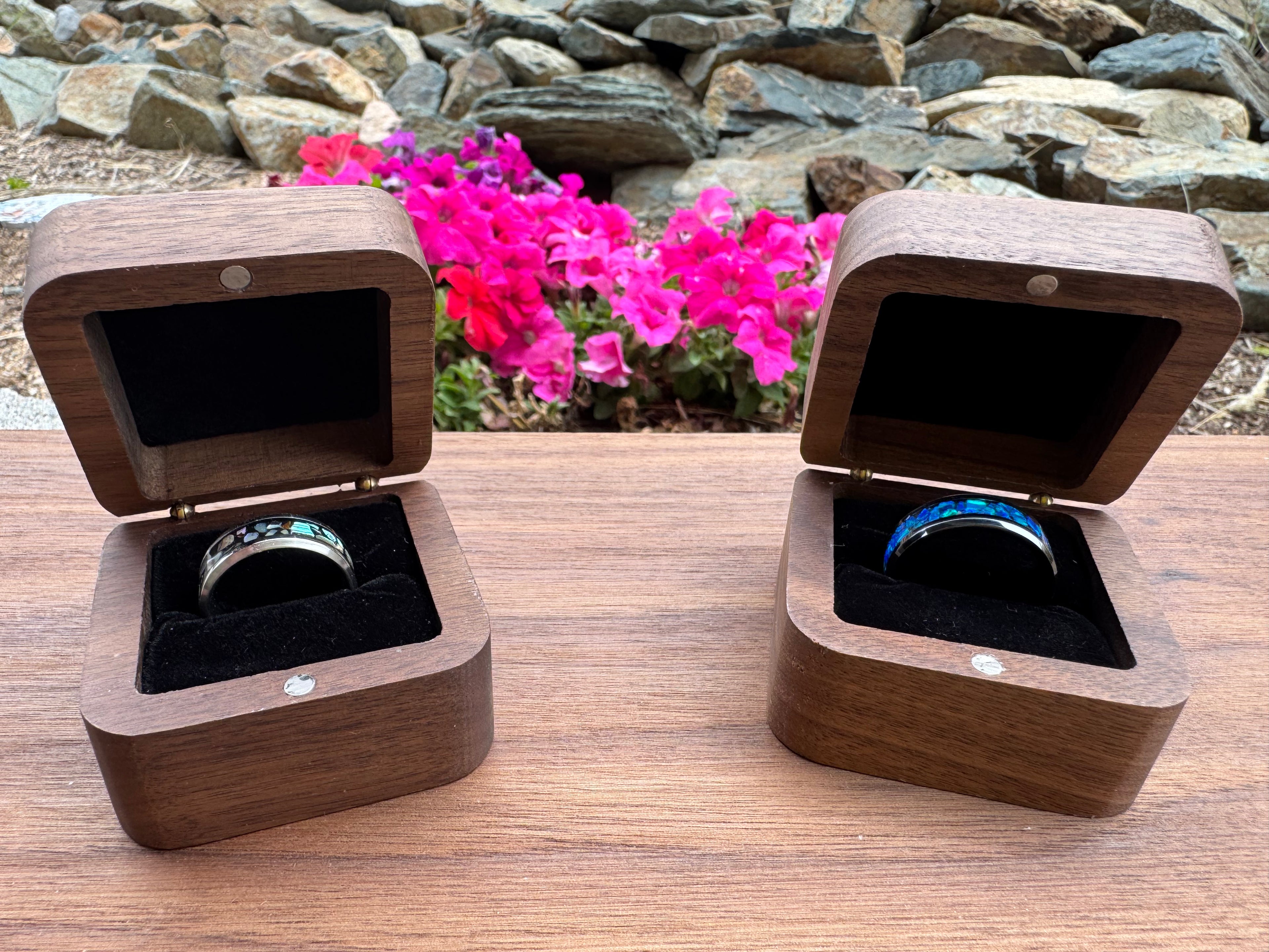 Each ring is carefully handcrafted in small batches using quality materials and unique inlays. No two are exactly alike — every piece is made to be worn, noticed, and enjoyed.